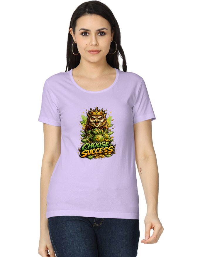 This powerful “Choose Success” graphic T-shirt is designed for women who are focused, ambitious, and driven. Featuring a bold crowned owl with money elements, this design represents intelligence, strategy, and financial success.