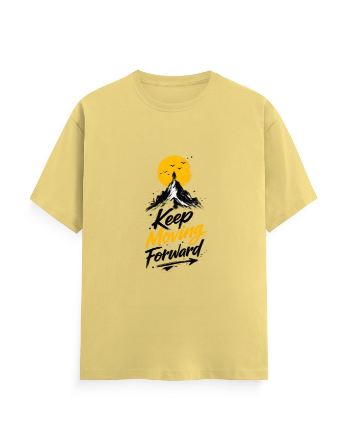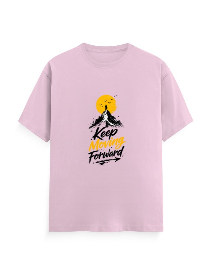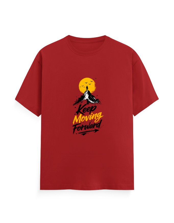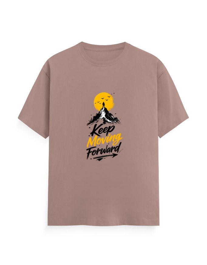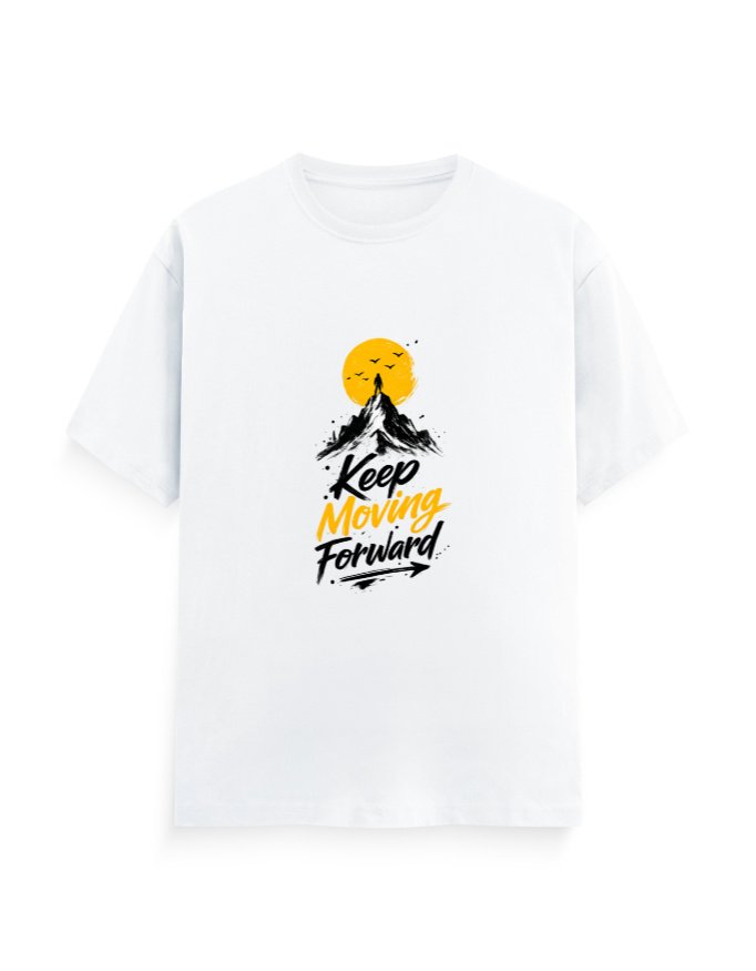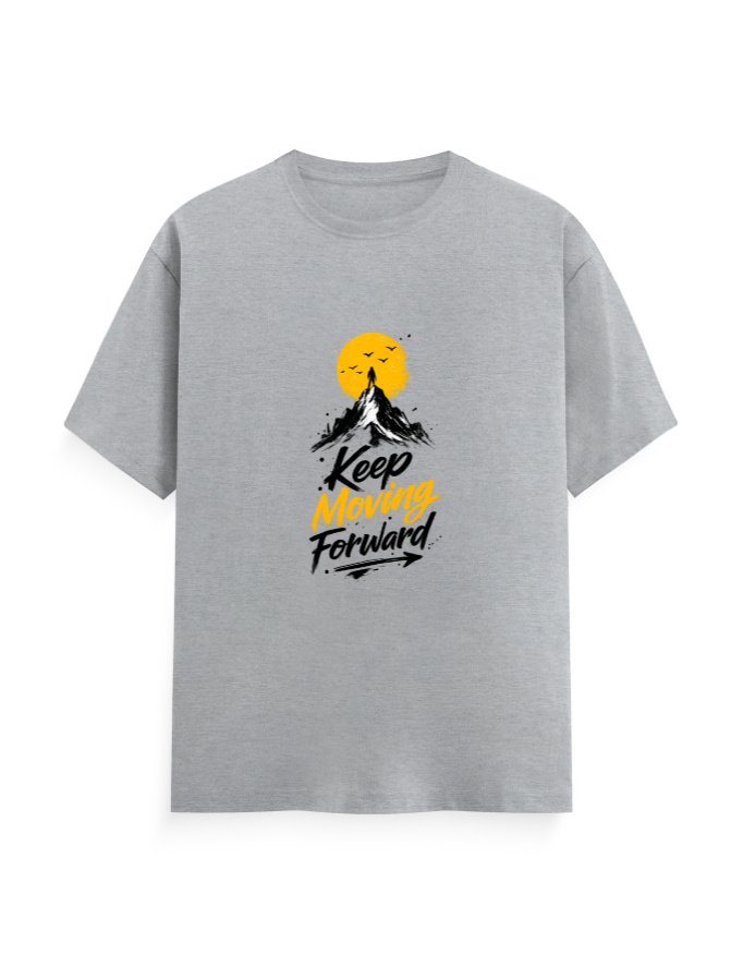 This powerful “Keep Moving Forward” graphic T-shirt is designed for those who never give up. Featuring a bold mountain peak with a lone figure and rising sun, this design represents growth, resilience, and continuous progress.
