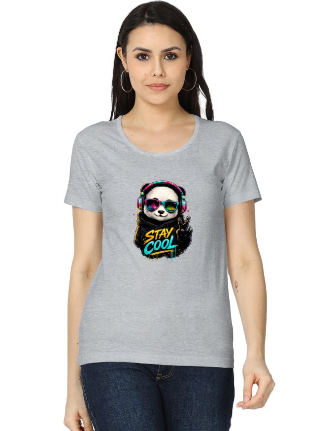 This playful “Stay Cool” panda graphic T-shirt is perfect for women who love fun fashion, bold colors, and trendy streetwear. Featuring a stylish panda with headphones and neon sunglasses, this design brings a cool, confident vibe to your everyday look.